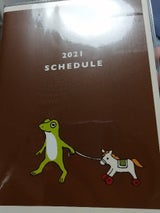 カエルが可愛かったので買いました。ダイアリーの部分は、ほんとに予定書かせる気あんのかってくらいカエルの絵で占領してます笑