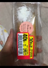 生クリームの下にかための桃味クリーム。果肉あり。くどくない