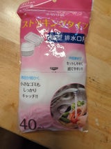 キッチンの排水溝のネットです。とても細かいゴミも逃がさないので重宝です。量も多いので惜しげなく使っています。