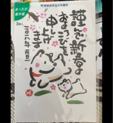 通常の絵の書いた年賀ハガキだが、デザインがよい