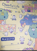 可愛い連絡帳です。表紙裏に時間割つき。
