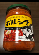 ボルシチスープ。瓶詰めになっているので、使いやすい商品です。