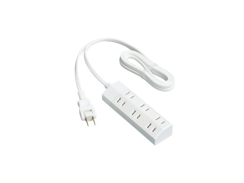 ACアダプターもスッキリ収まる。雷サージ低減素子付。内ボディにトラッキングに強い『ユリア樹脂』 外ボディにも『燃え広がりにくい樹脂』を採用した熱に強い二重ボディ。また、コード根元部折り曲げ強度(保証値)を従来品の2倍にアップ。コードも二重被ふく、栓刃間のユリア樹脂でトラッキング防止、また、はがれにくい極薄の絶縁被ふく付プラグで感電への不安を抑えます。