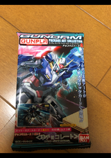 ウェハースおまけ付きなもので、ホワイトクリームウェハースが多い中、こちらはチョコがはさまってます。それだけで買いました。食べたい!ガンダムカードはGAT-X103 バスターガンダムでした!