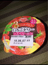 いちごゼリーと書いてありましたが、モモが入っていました。