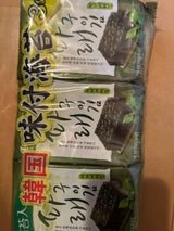 んー、安くて美味しいけど韓国で食べた時の海苔はもっと塩がついててごま油もきいてて、ご飯に合う感じだったので美味しく、なので残念でした。 これは、そのまま食べたら美味しい感じ。 ご飯には…薄いかな。