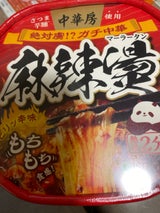 ファミリーマートで見つけました。さつまいも麺でもちもち!スープがよく絡んで山椒が効いてちゃんとシビ辛い。本格的でリピ買いしています
