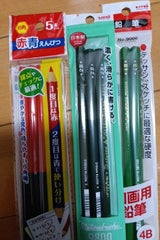 赤鉛筆だけのものと同じかそれより多い本数で100円。 間違い直しの丸付けは青と決まっているらしく、2色必須なので助かります。