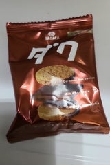 全粒粉入りの硬めのクッキーかなと、パッケージだけ見て買ってしまった。全然違いました。 チョコはとても美味しいけど、挟んでるのは何かわかりません。これをダクって言うのかな? 柔らかくて、クッキーでもないし、不思議な触感です。 可もなく不可もなく。リピはありません。