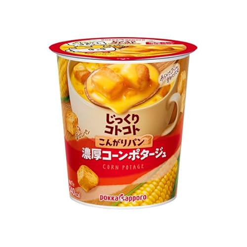 ポッカサッポロのじっくりコトコトこんがりパン・濃厚コーンポタージュです。 パンからじゅわ~と染み渡る素材溶け込む美味しさです。