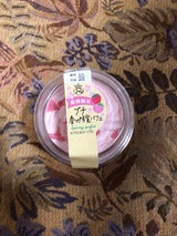 上から、削ったイチゴチョコ、いちごホイップ、桃ゼリー(だと思う)、ミルクババロア が層になっています これが95円で食べれるとは! いちごホイップが、甘酸っぱくて美味しい