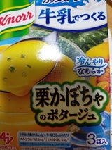 味の素クノールカップ牛乳で作る栗かぼちゃポタージュ、めっちゃ美味しいです"(∩>ω<∩)"