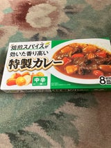 なんか薄い。いつも自分でスパイスを調合して辛くないカレーを作り、味の調節としてカレールーをひとかけ入れてコクを出しているんですが、半箱入れないと全然コクが出なかった。そう考えるとコスパ悪いのかも。辛口タイプのほうが売り切れていたからそちらのほうが人気があるのかな?