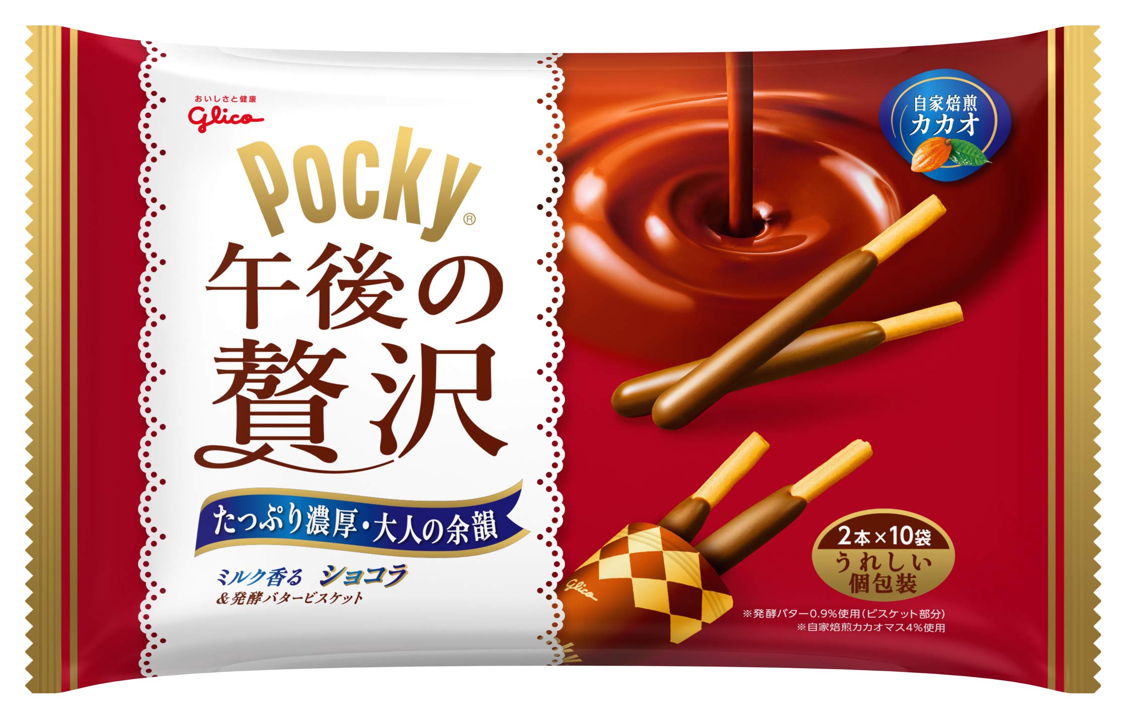 バタービスケットとたっぷりコーティングされたチョコの両方のおいしさがホント贅沢です。 2本入り×10袋。。お値段も贅沢です。