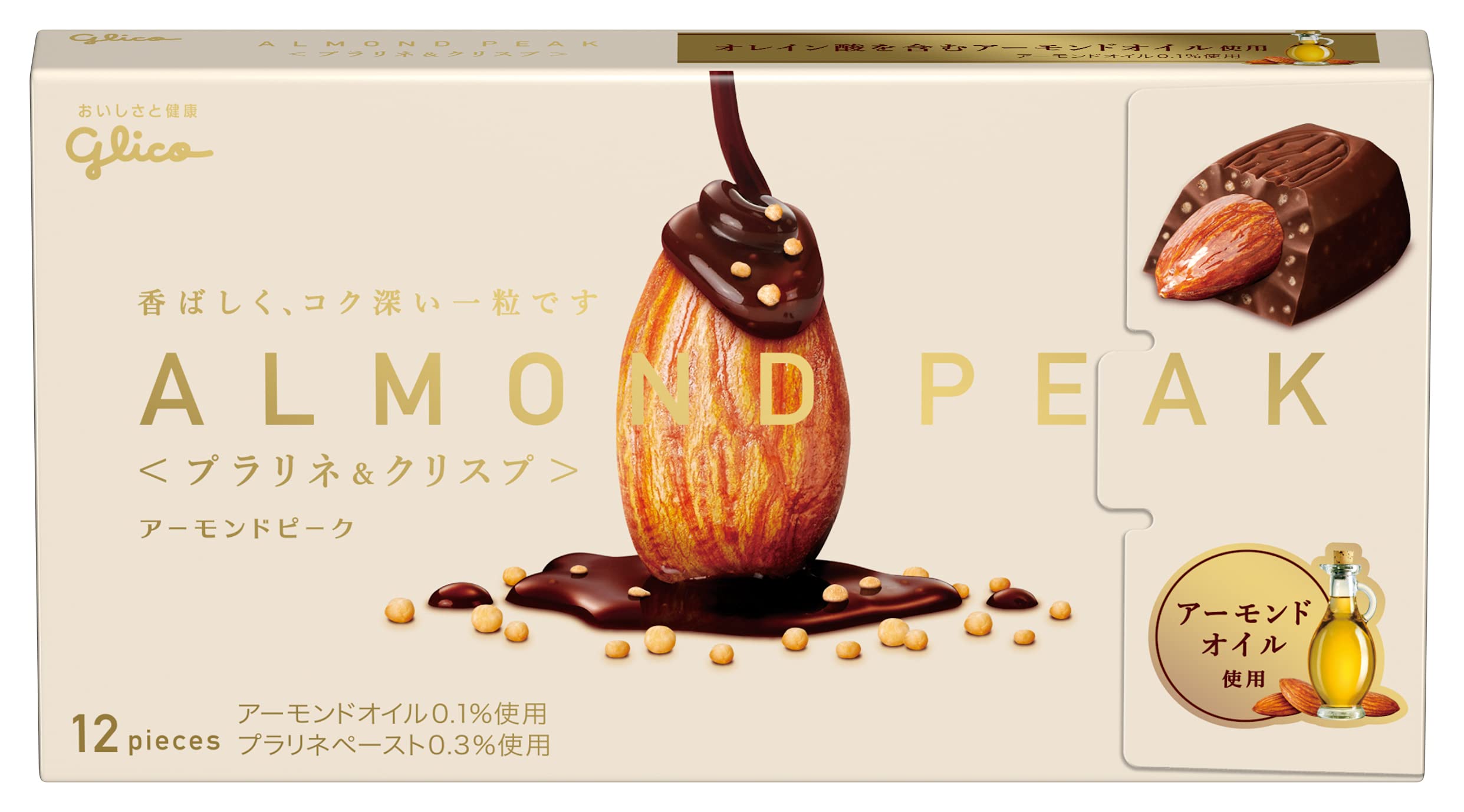普通のアーモンドチョコより、粒の大きさは小さめだけど…なんと言っても食感がgood!美容や健康にいいアーモンドオイル配合!小麦パフと、キャラメリゼでコーティングされたアーモンドが、香ばしくて贅沢な1品!