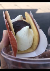 挟んであるのはバニラアイスがメイン。 餡子は乗っているけど少しだけ。 餡子好きには少し物足りなかったです。 手を汚さず片手で食べられる工夫はgoodですね。