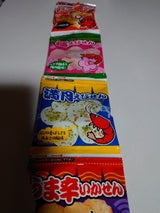100円で4種類楽しめそうで購入♪梅が個人的に好き!そんなに薄っぺらくないのでしっかり噛めるタイプ。意外と少なくてペロリ。