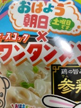 ABCテレビ「おはよう朝日土曜日です」(毎週土曜朝6:30〜8:00、関西ローカル)とエースコックワンタンメンのコラボレーション ニンニク感はわからず、口臭の心配は不要だと思う。おなじみのワンタンメンの味変だととらえる。
