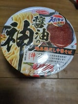 スープにコクがあってカップ麺にしては珍しい太麺とよく馴染んでいます。チャーシューなしでミンチ肉が少し入っているだけなのが残念。