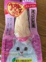 ささみはいつも茹でてあげていますが、カニカマ味は珍しかったので購入。いつもほぐしてあげていたので、食いついてくるかと思ったら、お皿の前で待っていました。ほぐしてあげると食べてくれましたが、少し固かったような感じです。