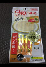 お留守番のご褒美として。狂った様に食べてました。チュールの袋を捨てた後も、ゴミ箱から引っ張りだして一心不乱に袋を舐めてました、、、