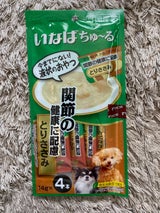 イオンで買った、以前テレビCMでも宣伝された、いなばちゅーる14グラム✕4本入り。味は、とりのささみで、関節の健康に配慮された成分が含まれているので愛犬のおやつに買ってあげました。無我夢中にペロペロとなめるしぐさは可愛いですね。以前はテレビCMで放送された時は別のいなばちゅーるを買ってあげました。それも、とりささみです。よっぽど美味しんでしょうね。喜んでました。