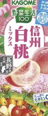 カゴメの野菜生活100信州白桃ミックスは、味が美味しそうで、季節限定の商品だったので買ってきました