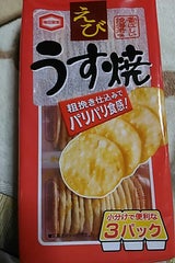 亀田製菓の薄焼シリーズ。えび。海老のお味がいい感じの薄焼きお煎餅。