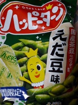 最近のハッピーターンは色んな味が出て楽しいです。ここ枝豆味も期間限定品です。美味しいですよ。