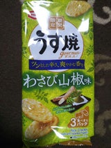 ワサビよりも山椒の風味が勝っているかな でもこのうす焼は、やはり昔からある定番が一番旨いと思う それと、中身の枚数が減った気がするけど自分だけ? 何かスカスカだった