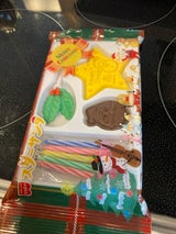 スターが大きくて見た目は良いけど食べにくかったかな。もう少し小さくしてトナカイチョコがあると嬉しい。クリスマスケーキが華やかになりました。