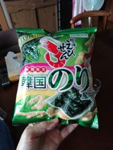 韓国のりの風味が口の中に広がるお菓子です。