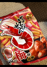 期間限定商品なので、購入してみました。梅の酸味がえびせんとマッチして、美味しいです。