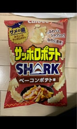 シャークの文字に惹かれて購入してしまった。サッポロポテトはやっぱりバーベキューが1番かな。