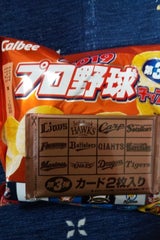 カードが欲しくて買ったが、目当ての球団が出なくて残念。セ・リーグパ・リーグで分けて欲しい。チップスは、量がちょうどよく、味もしっかりしていてビールに合う。