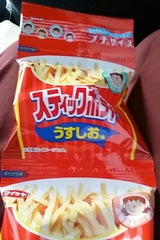 細長い形のおもしろいポテチ。 美味しいです。