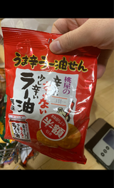 金吾堂のお煎餅は好きで、よく買っていますがこの旨辛ラー油せんは初めて見たし、辛い物好きなので買ってみました。