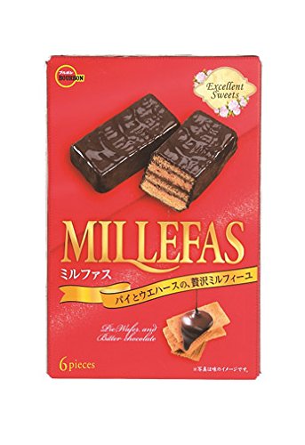 ミルフィーユパイとウエファースをチョコでコーティングしたお菓子です。 ひとつでかなりの満足感があるのでお茶うけにひとつでリッチなティータイム気分になれました。