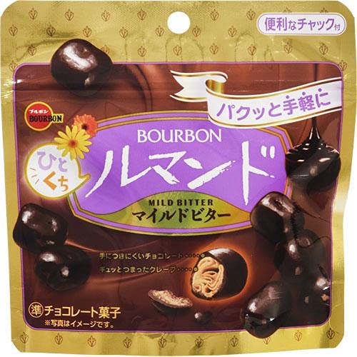 マイルドビターでサクサクおいしいです。ブルボンルマンドが小ちゃく、可愛く丸くなってたべやすくなりました。 ビター味なチョコがたっぷりかかり美味しかったです。食べ切りサイズもナイスです。
