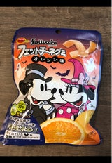 フィットチーネグミのシリーズはどれも好きで子供がよく買って食べてます。 あの酸っぱいのが付いてるのが美味しいみたいです。 このグミの味が美味しくて個人的にはイチバン好きかも。 パッケージのミッキー&ミニーも可愛いし、光に当てとくと暗闇で光ように袋が作られていて子供が喜んでました。