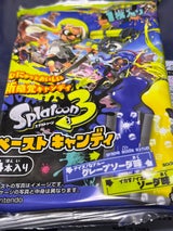 スライムのような飴という感じ。インクを撒き散らすスプラトゥーンらしい。 最初は抵抗があったが、おいしい。 家や公園などで楽しむ感じ? てが汚れそう。 4袋入ってて2種類の味と感じた。