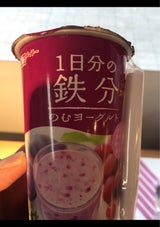 鉄分系で、さらに飲むヨーグルト。 きっと鉄臭くて美味しくないだろうと思っていたらめちゃくちゃ美味しかったです! つぶつぶが苦手な人は注意してください!