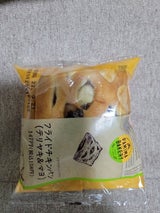 フライドチキン?? よくあるタイプの思い浮かぶ フライドチキンではないです。 ハンバーグ状のものと ソースとマヨネーズ?が 挟まれていました。 可もなく不可もなく 普通の調理パンかな。