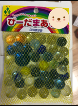 安心の日本製。 ラムネ瓶に入っているようなものと、昔からある模様入のものとの混合です。 ちょっと懐かしい感じですね。