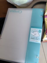 たくさんもらったご褒美シールの貼ってある表紙を捨てたくないと言ってもう使わないノートをいつまでも処分できないでいるので、表紙は残してルーズリーフにしてみるのはどうかと提案。いざ探してみるとバインダータイプのものに表紙部分を入れられるようなポケットはないため、自分でパンチで穴あけをして取り付けることに。