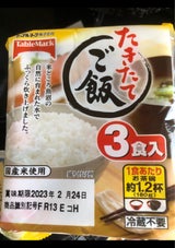 米炊くの面倒でチンできるやつを毎回購入してます。 購入地域付近だと、3パック各180g入っていて、他メーカーより安いです。まぁ、満足!