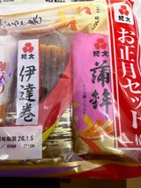 伊達巻、紅白のかまぼこが欲しかったのでお手頃価格のこのセットを購入。細いなるとが入っていましたがこれはいらないからその分値段を下げてほしい。