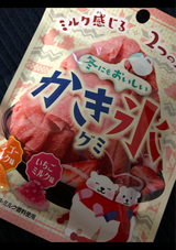 二個で100円だったので、グミ好きの子どもに買いました。冬にもおいしいかき氷って、ひんやりってことかな。