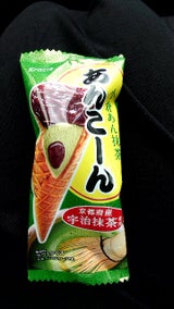 まさにあんコーン。コーンの中に抹茶のアイスで、抹茶のアイスの中にあんこ、そして、上にもあんこ。美味しい