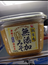 地元企業のお味噌。 お味噌はいつも温度管理されて売られている生きてるお味噌を選んでいます。